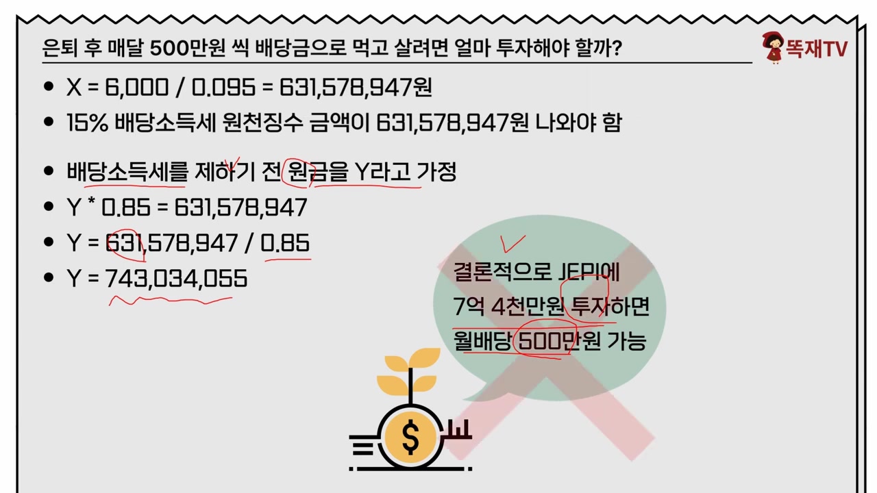 세전 500만 원의 월급을 받으려면 7억 2천만 원의 투자를 해야 해요.