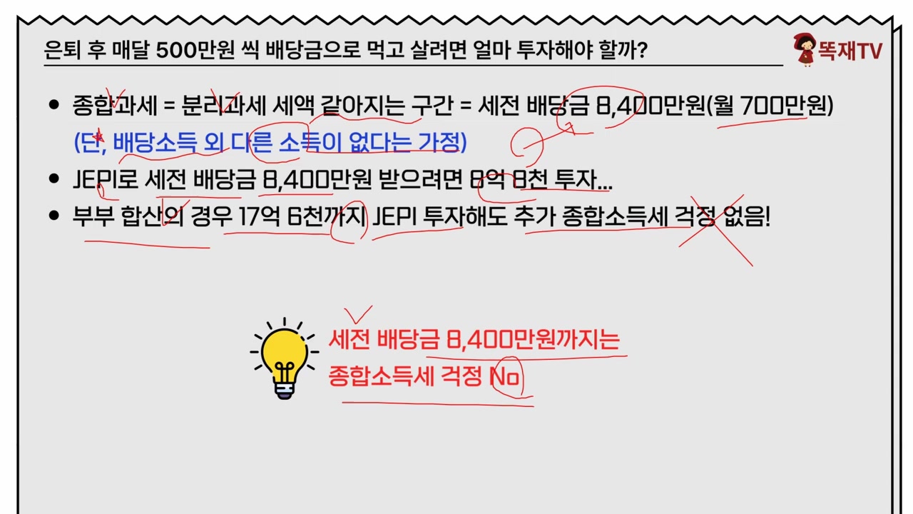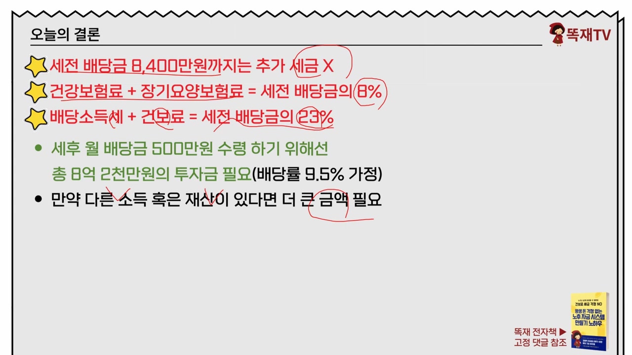 세전 배당금 8,400만 원까지는 종합소득세 걱정이 없어요.