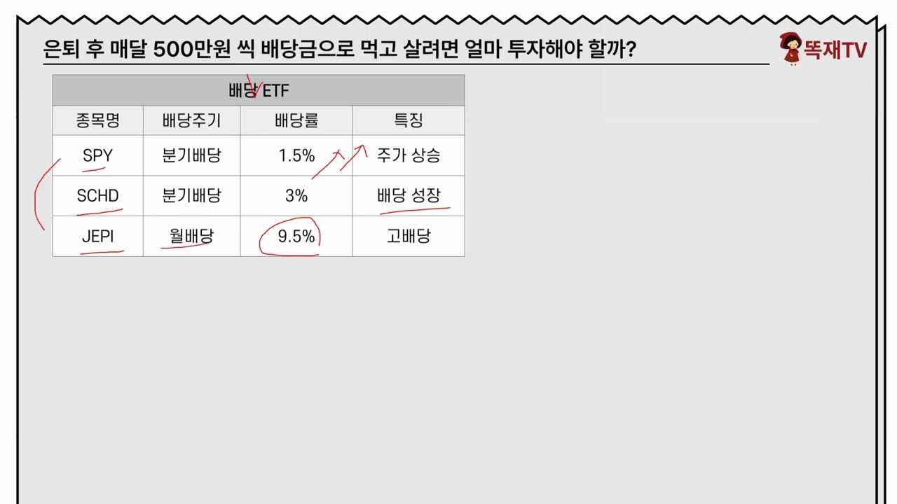 적정 생활비를 월 500만 원으로 계산하고자 할 때, 어떤 종목에 투자를 해야할지 고민하자.