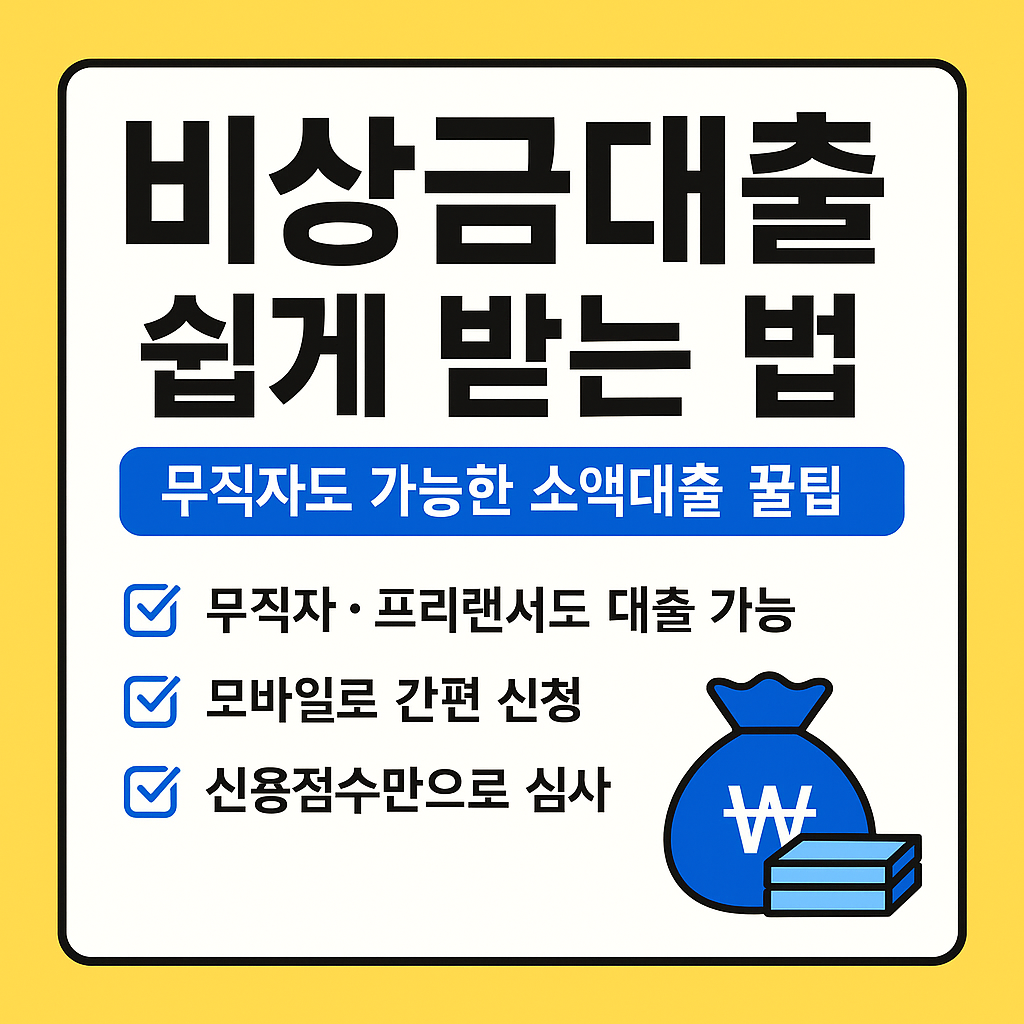 비상금대출은 소액의 단기 대출을 뜻하며, 일반적으로 50만 원~300만 원 사이의 금액을 비교적 간단한 절차로 빌릴 수 있는 금융 상품입니다.