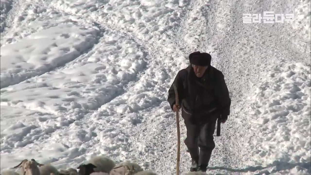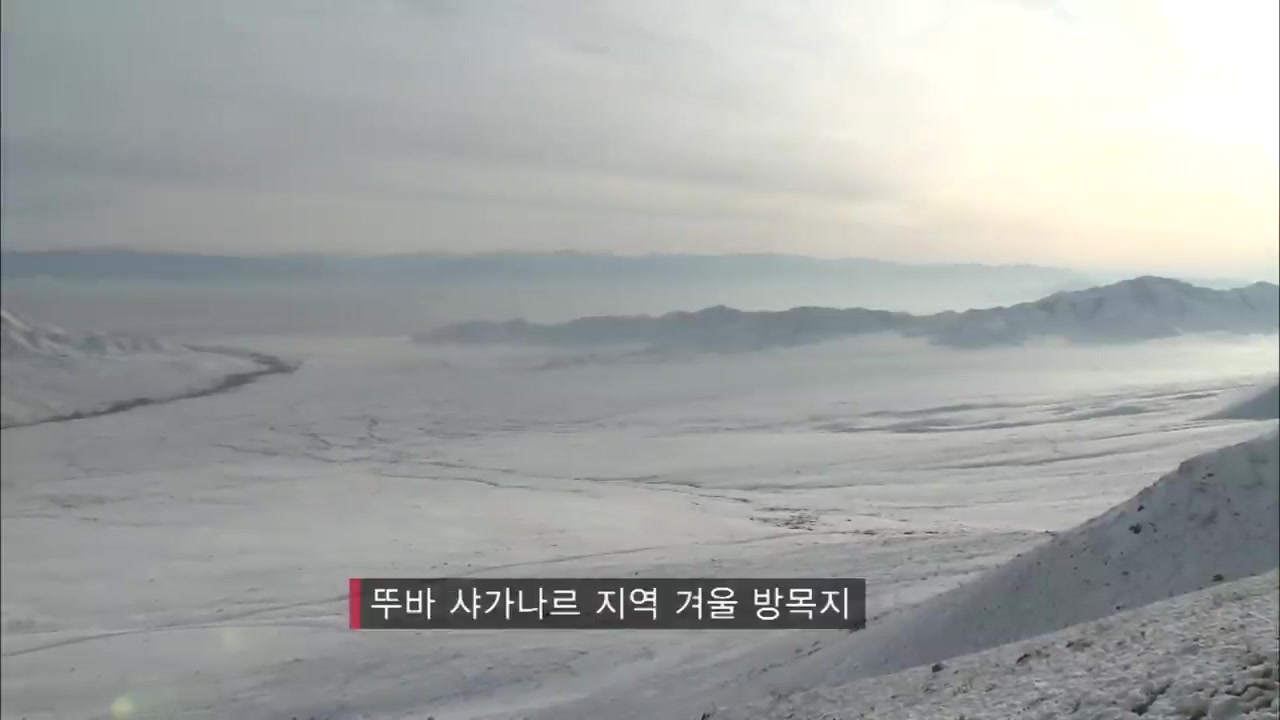 바람을 막아주는 산을 택한 이유와 목동들의 목소리가 울리는 겨울 방목지의 풍경이야.