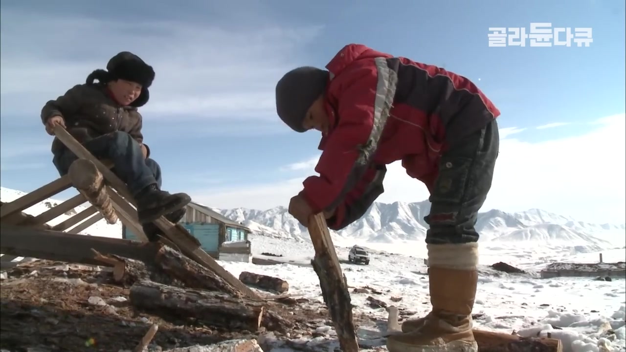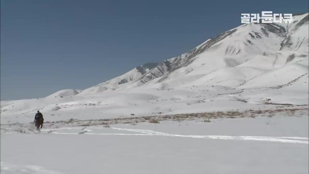 눈 덮인 초원에서 유목민들은 겨울 방목지 주변을 경계하며 늑대로부터 목숨을 지키는 중요한 임무를 수행해.