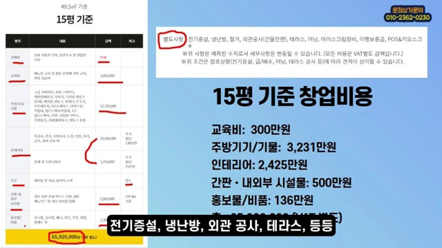 - 가맹비는 면제되지만, 교육비와 주방기기 비용이 크다.