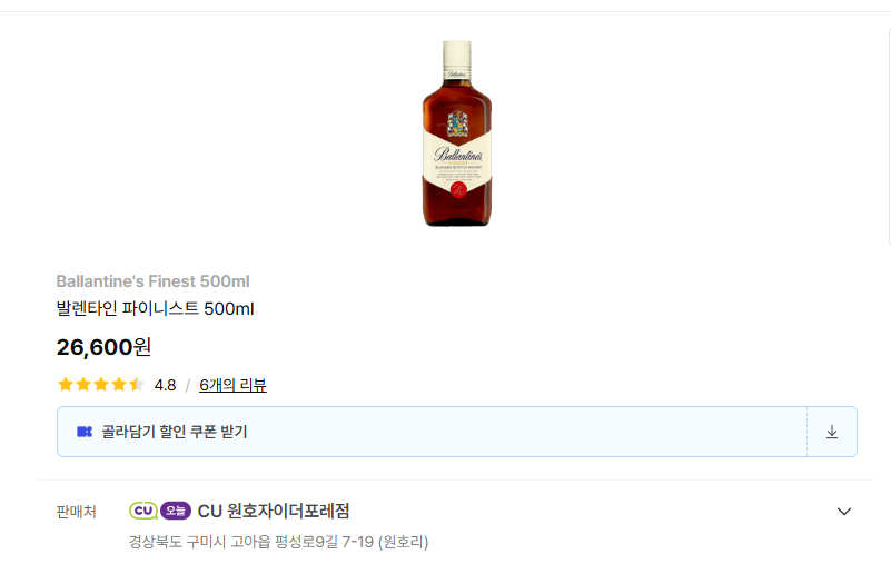 오늘은 CU, GS25, 이마트24 등에서 쉽게 구할 수 있는 위스키 중