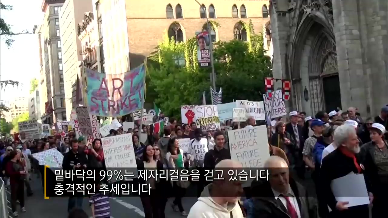 시위대는 빈부격차 해소와 금융자본 1%의 통제를 요구했어요.