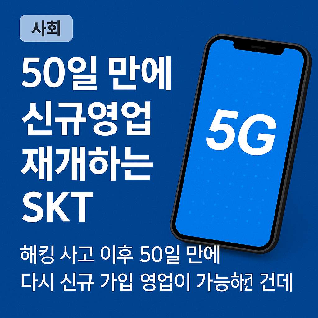 지난 5월 초 대규모 해킹 사고 이후 50일간 신규 가입이 제한됐던 SKT가 드디어 영업 정상화를 맞이한 것이죠.
